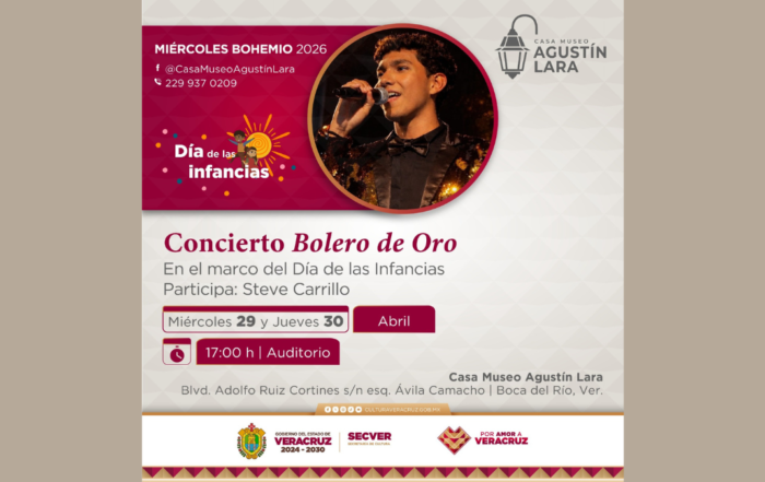 La Secretaría de Cultura de Veracruz (SECVER) invita al concierto Bolero de Oro, que se realizará los días 29 y 30 de abril, a las 17:00 horas, en el auditorio de la Casa Museo Agustín [...]