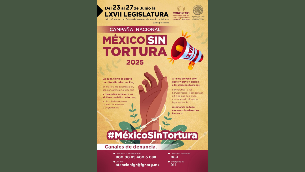 #VERACRUZ I El #CongresodelEstadodeVeracruz se suma a la Campaña Nacional “México Sin Tortura” 2025, del 23 al 27 de junio. #MéxicoSinTortura @Legisver