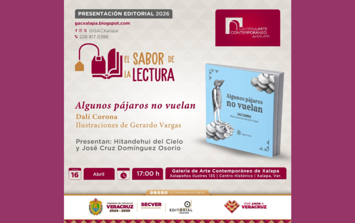 La Secretaría de Cultura de Veracruz (SECVER) invita a las presentaciones editoriales de Algunos pájaros no vuelan, que tendrán lugar los jueves de abril en Coatepec y Xalapa, como parte del programa El Sabor de [...]