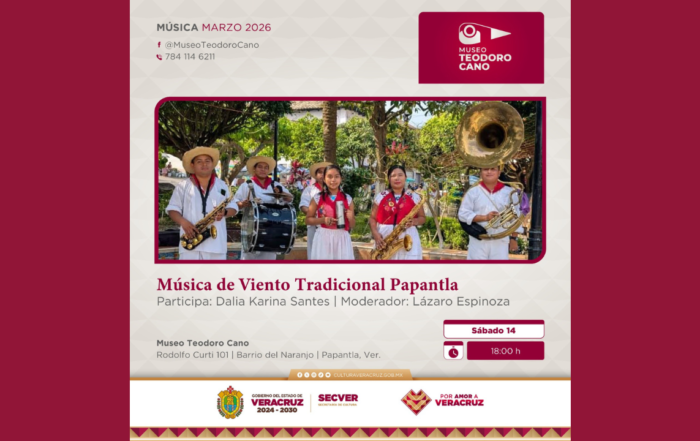 La Secretaría de Cultura de Veracruz (SECVER) invita al público a la presentación artística de Música de Viento Tradicional Papantla, que se realizará el sábado 14 de marzo, a las 18:00 horas, en el auditorio [...]