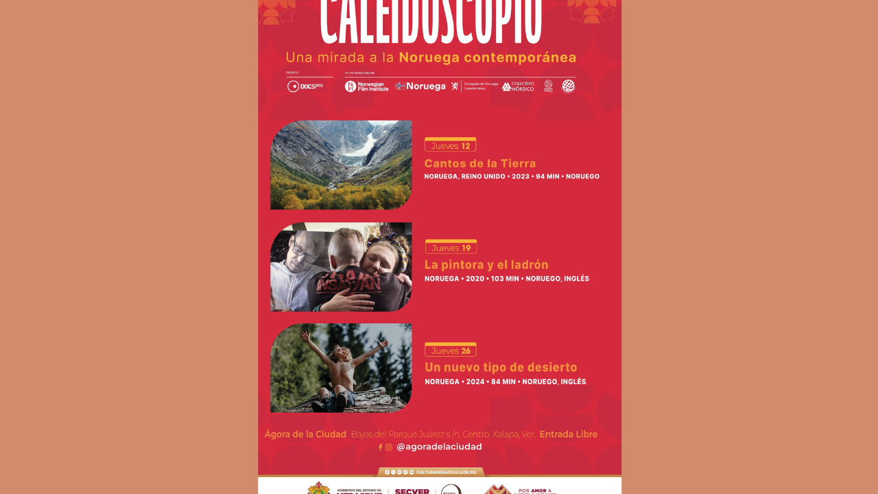 En coordinación con DocsMX, la Embajada de Noruega en México, el Norwegian Film Institute, Maraña es Cultura A. C. y la Red Xalapeña de Cineclubes, esta edición presenta el ciclo Caleidoscopio Noruego: Diferentes perspectivas de la Noruega contemporánea.