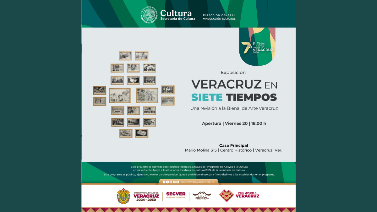 La Secretaría de Cultura de Veracruz (SECVER) invita al público a la inauguración de la exposición Veracruz en siete tiempos. Una revisión a la Bienal de Arte Veracruz, que se llevará a cabo el viernes 20 de marzo, a las 18:00 horas, en el recinto cultural Casa Principal, en la ciudad de Veracruz. La entrada es libre para todos los asistentes interesados en conocer la evolución artística de la entidad.