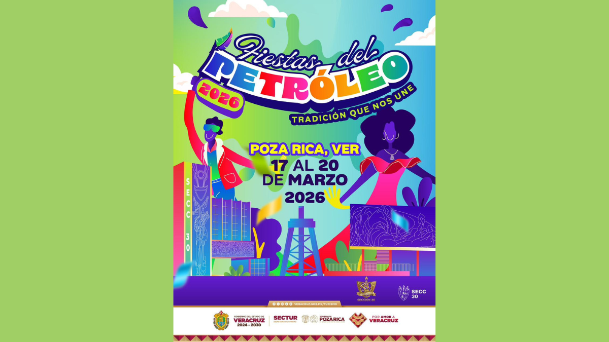 La Secretaría de Turismo (SECTUR) impulsa la promoción de las Fiestas del Petróleo, que se celebran hasta el 20 de marzo en la ciudad de Poza Rica, como parte de la estrategia para fortalecer la actividad turística y proyectar los destinos del norte del estado. Bajo el lema Tradición que nos une, esta festividad representa una oportunidad para atraer visitantes, dinamizar la economía local y poner en valor la identidad histórica de una región estrechamente ligada al desarrollo petrolero del país.