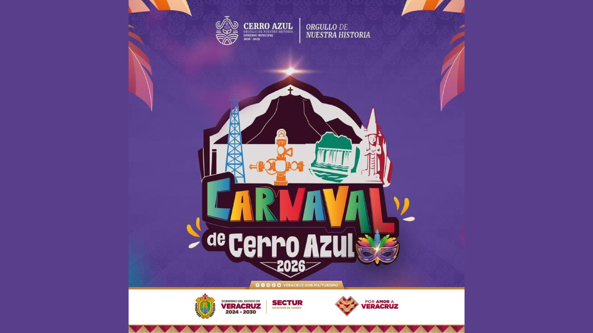 La Secretaría de Turismo (SECTUR) invita al Carnaval Cerro Azul, que se llevará a cabo del 16 al 19 de abril, con una programación que reúne música, tradición y espectáculos para todas las edades.