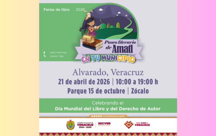 La Secretaría de Cultura de Veracruz (SECVER), en colaboración con el Ayuntamiento de Alvarado, invita a participar en el Paseo literario de Amatl en tu municipio, el 21 de abril en el Parque 15 de [...]
