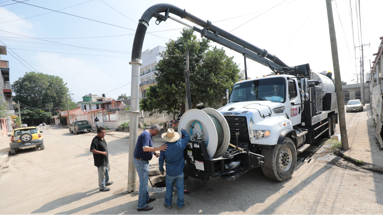 Equipos especializados trabajan para evitar nuevos colapsos. En atención a las necesidades prioritarias de la población afectada por las pasadas inundaciones, el Gobierno del Estado, a través de la Secretaría de Infraestructura y Obras Públicas (SIOP) y la Comisión del Agua del Estado de Veracruz (CAEV), realiza trabajos de desazolve del drenaje sanitario en el fraccionamiento La Florida y en las colonias Las Gaviotas, Lázaro Cárdenas, Morelos y Magisterio. Las labores son efectuadas con unidades tipo vactor y equipos técnicos, con el propósito de restablecer el funcionamiento de las redes de alcantarillado que colapsaron a causa del arrastre de lodos [...]