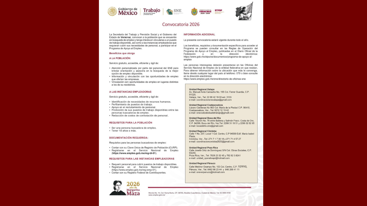 #VERACRUZ Disponible la convocatoria 2026 del Programa de Apoyo al Empleo en Veracruz