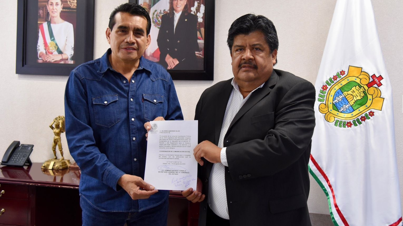 Entrega el presidente de la Junta de Coordinación Política a Silverio Quevedo Elox nombramiento de coordinador de Comunicación Social. El presidente de la Junta de Coordinación Política (Jucopo) de la LXVII Legislatura, diputado Esteban Bautista Hernández, entregó al comunicador Silverio Quevedo Elox el nombramiento que lo acredita como titular de la Coordinación de Comunicación Social del Congreso del Estado de Veracruz. En un acto realizado en las oficinas de la Jucopo, el legislador destacó la importancia de la labor de comunicar a la sociedad veracruzana, con responsabilidad, profesionalismo, oportunidad, claridad, veracidad y eficiencia, sobre el trabajo que realizan las diputadas [...]