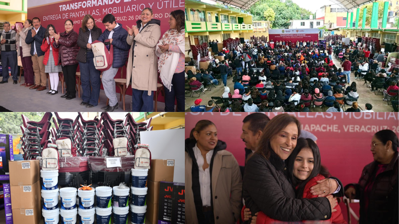 Entrega de útiles escolares y rehabilitación de escuelas continúan en el municipio. Además, vivienda, desazolve, infraestructura y la reconstrucción de El Colotero. “Es nuestra obligación como gobierno; para eso son los impuestos y no los íbamos a dejar solos. Ustedes han hecho un gran trabajo al levantarse”, expresó la gobernadora Rocío Nahle García durante la entrega de pantallas, mobiliario y útiles escolares a 14 escuelas secundarias de Álamo. Durante su segunda visita al municipio en lo que va del año, explicó que, como respuesta a los daños provocados por las inundaciones de octubre pasado, el Estado entregó mil 633 kits [...]