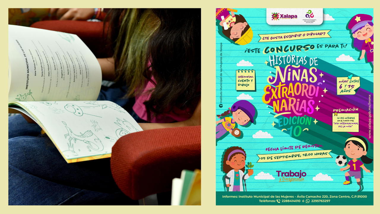 Con el objetivo de fomentar la creatividad, la participación y la inclusión social de niñas y adolescentes, el Ayuntamiento, a través del Instituto Municipal de las Mujeres de Xalapa (IMMX), convoca a la décima edición del concurso de cuento y dibujo “Historias de Niñas Extraordinarias”. Podrán participar en las modalidades de cuento y dibujo las niñas y adolescentes de 6 a 15 años que residan en Xalapa o sus congregaciones. Los trabajos deberán abordar temas como: derechos de la niñez, sueños y metas; problemáticas cotidianas, o ciencia y tecnología. En dibujo se tendrán las categorías de 6 a 8 años; [...]