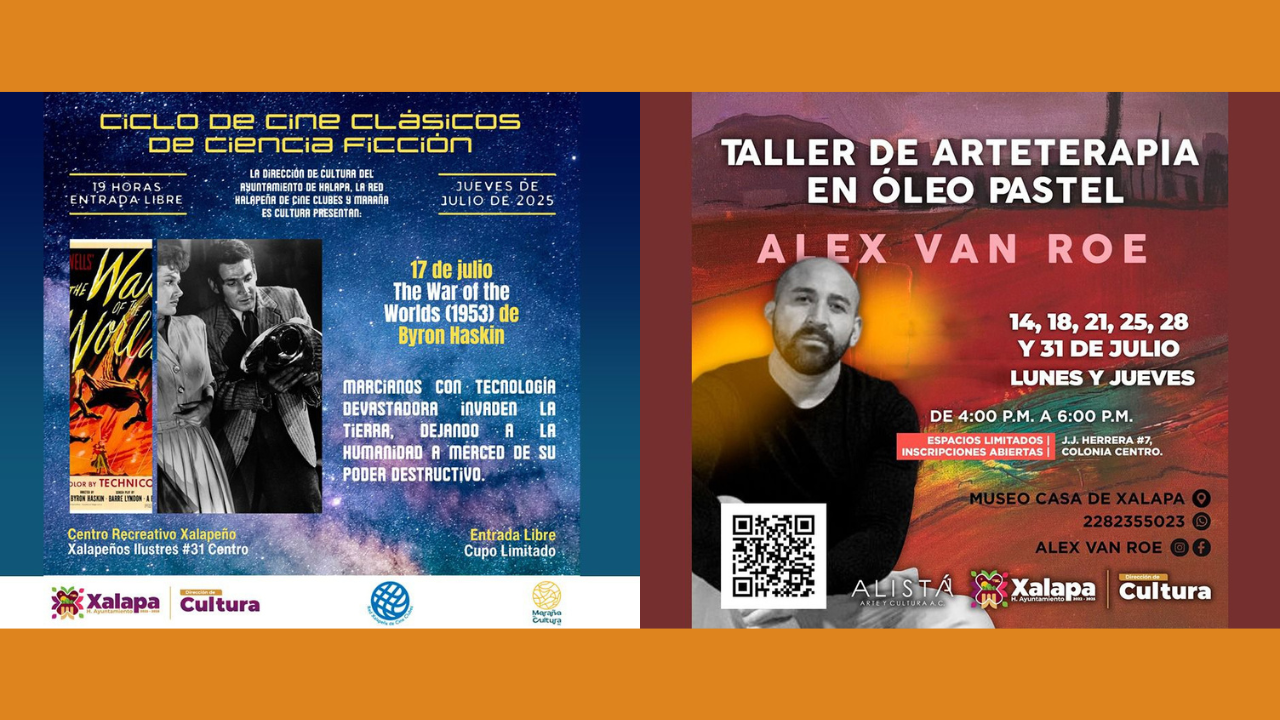 Con el objetivo de promover la cultura, el arte y la convivencia familiar, el Ayuntamiento de Xalapa invita a disfrutar de una variada cartelera de actividades que se desarrollarán en diversos espacios públicos de la ciudad. Este lunes a las 16:00 horas, en el Museo Casa de Xalapa (Muxa), se realizará el taller de Arteterapia en óleo pastel, impartido por Alex Van Roe. A las 17:00 horas, en el Centro Recreativo Xalapeño (CRX), se presentará la Muestra de Artes Visuales IFXA 2025. Más tarde, en el Muxa, continuará el taller de verano “Danza árabe terapéutica, a través del velo”. El [...]