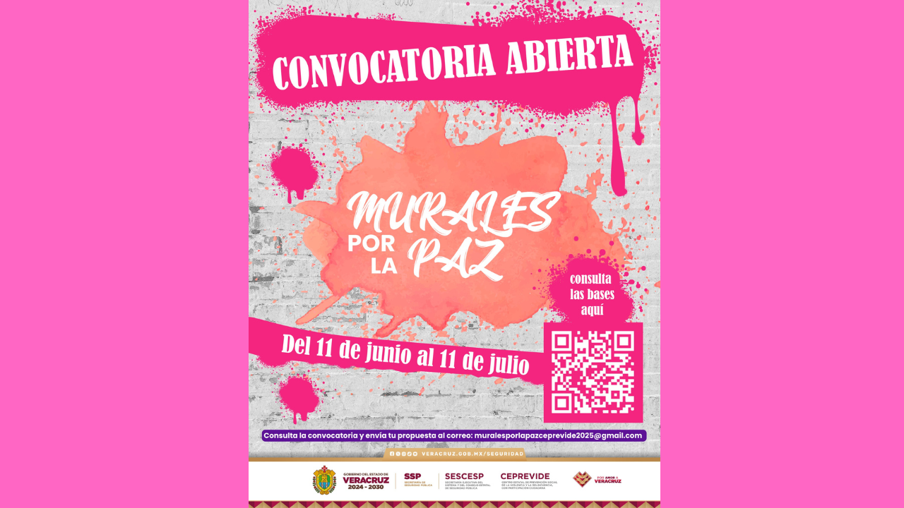 Hasta el 11 de julio, jóvenes de entre 14 y 20 años podrán presentar sus propuestas. Deberán abordar temas como igualdad de género, prevención de adicciones o derechos humanos. La Secretaría de Seguridad Pública (SSP) y el Centro Estatal de Prevención Social de la Violencia y la Delincuencia con Participación Ciudadana (CEPREVIDE), invita a estudiantes de nivel Medio Superior a participar en la convocatoria del concurso Murales por la Paz, iniciativa que busca fomentar entornos escolares seguros, inclusivos y solidarios mediante la expresión artística juvenil. Las y los jóvenes podrán presentar propuestas que promuevan la cultura de paz, la no [...]