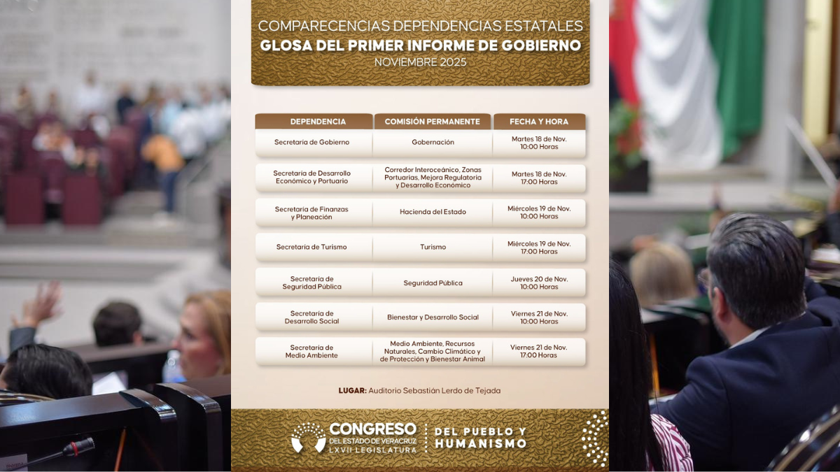 #VERACRUZ Listo, calendario de comparecencias para la Glosa de Primer Informe de Gobierno*