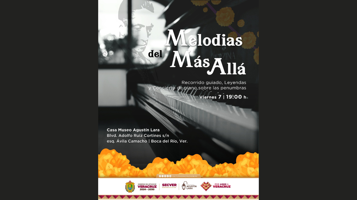 La Secretaría de Cultura de Veracruz (SECVER) invita a todo el público a la velada musical Melodías del Más Allá, que se realizará el próximo viernes 07, a las 19:00 horas, en la Casa Museo Agustín Lara de Boca del Río. La entrada es gratuita. Este evento continúa con las actividades conmemorativas del Día de Muertos e incluye un recorrido guiado por las instalaciones del recinto, acompañado de la narración de leyendas y un concierto de piano en penumbras. La jornada se enmarca en la semana del aniversario de natalicio y defunción del célebre compositor. Agustín Lara nació el 30 [...]