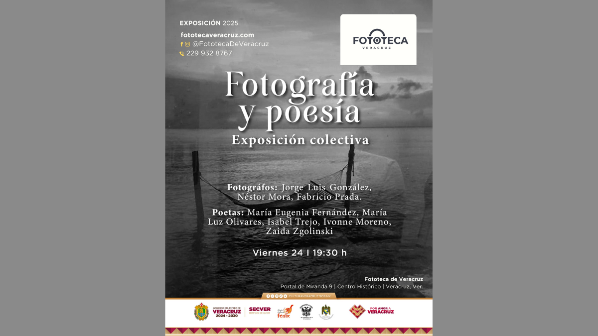 La Secretaría de Cultura de Veracruz (SECVER), en colaboración con el Grupo Cultural Fénix, la Federación Global de Liderazgo y Alta Inteligencia y la Academia Nacional de Historia y Geografía de la UNAM, invita a la inauguración de la exposición Fotografía y Poesía que se realizará el día hoy a las 19:30 horas, en la Fototeca Veracruz. La entrada es gratuita. Esta exposición colectiva reúne el arte de las letras y la descripción de la luz en 17 fotografías de Néstor Mora, Fabrizio Prada y Jorge Luis González y los poemas impresos de las escritoras veracruzanas María Eugenia Fernández, Lilia [...]