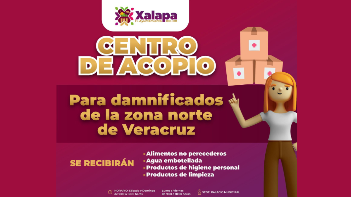 El Ayuntamiento de Xalapa reitera la invitación a la ciudadanía, así como a los distintos sectores sociales y productivos de la capital, a continuar sumándose a la donación de víveres y artículos de primera necesidad en apoyo a las familias damnificadas por las recientes lluvias registradas en la zona norte de Veracruz. A través del Centro de Acopio instalado en el patio central de Palacio Municipal, se reciben productos no perecederos, agua embotellada, artículos de higiene personal y de limpieza para el hogar, que serán entregados directamente a las comunidades afectadas por personal del Ayuntamiento. Las donaciones se reciben de [...]