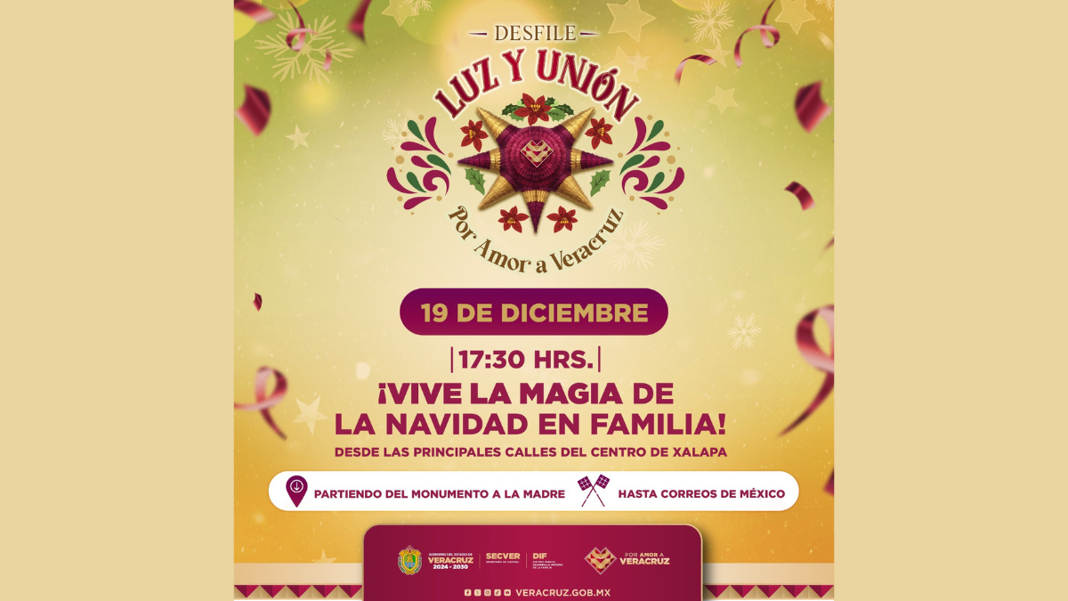 El Sistema para el Desarrollo Integral de la Familia (DIF), en coordinacion con la Secretaría de Cultura de Veracruz (SECVER), invita a las y los xalapeños a disfrutar de la segunda edicion del Desfile Navideño Luz y Union, que se realizará el próximo viernes 19 de diciembre, a partir de las 17:30 horas. El recorrido iniciará en el Monumento a la Madre, continuará por Palacio de Gobierno y concluirá en Correos de Mexico, ofreciendo a niñas, niños, jovenes y personas adultas un espectaculo diseñado para todas las edades, en un entorno seguro y ordenado. El desfile contará con la participacion [...]