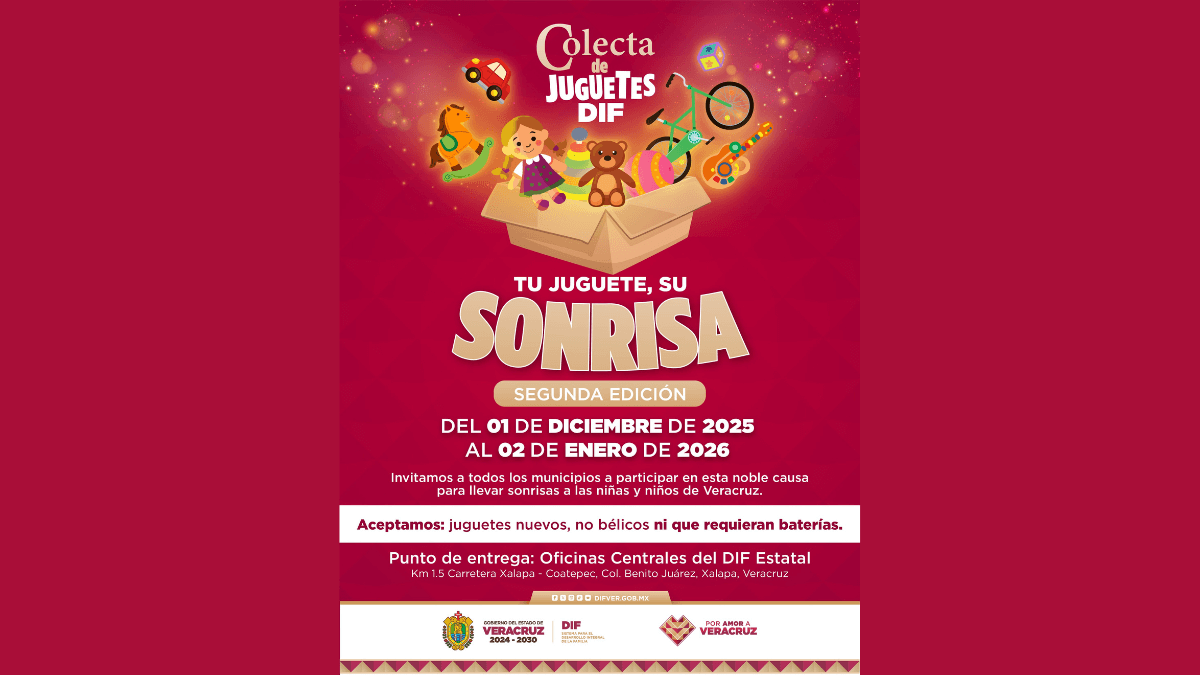 El Sistema Estatal para el Desarrollo Integral de la Familia (DIF) invita a instituciones, empresas y familias veracruzanas a sumarse a la colecta Tu Juguete, Su Sonrisa, una iniciativa que busca llevar alegría, esperanza e inspiración a niñas y niños que viven en condiciones de alta vulnerabilidad. La directora general del DIF estatal, Clara Mora Juárez, destacó que cada juguete donado representa una oportunidad para fortalecer el derecho al juego, a la imaginacion y a la creatividad; “estos momentos de ilusión construyen recuerdos para quienes quizás no tengan un regalo de Día de Reyes, recuerdos que perduran y nutren su [...]