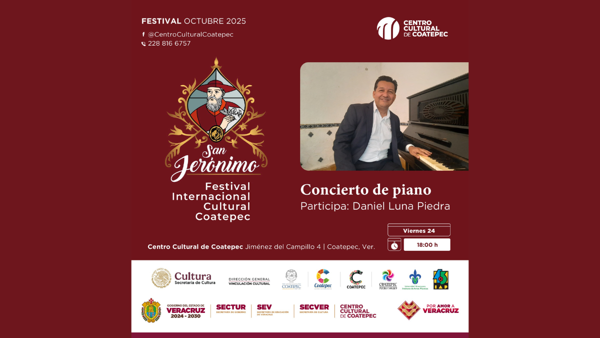 La Secretaría de Cultura de Veracruz (SECVER) invita a disfrutar de los conciertos de Piano y Marimba que tiene preparados para este viernes 24 de octubre en el Centro Cultural de Coatepec. Las actividades son gratuitas. A las 17:00 horas, se presentará el recital de piano y Marimba a cargo de Denisse Flores, pianista y profesora egresada de la Facultad de Música; y Daniel Luna Flores. Después, a las 18:00 horas, Daniel Luna Piedra, artista con destacada trayectoria nacional, continuará deleitando al público con su talento en el recital de piano. Luna Flores es un percusionista joven originario de Coatepec, [...]