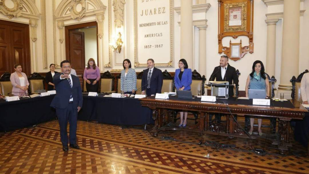 El presidente municipal de Puebla, Adán Domínguez, en Sesión de Cabildo, tomó protesta a Artemio Pacheco Serrano como regidor suplente, tras la solicitud de licencia de Carlos Montiel Solana.