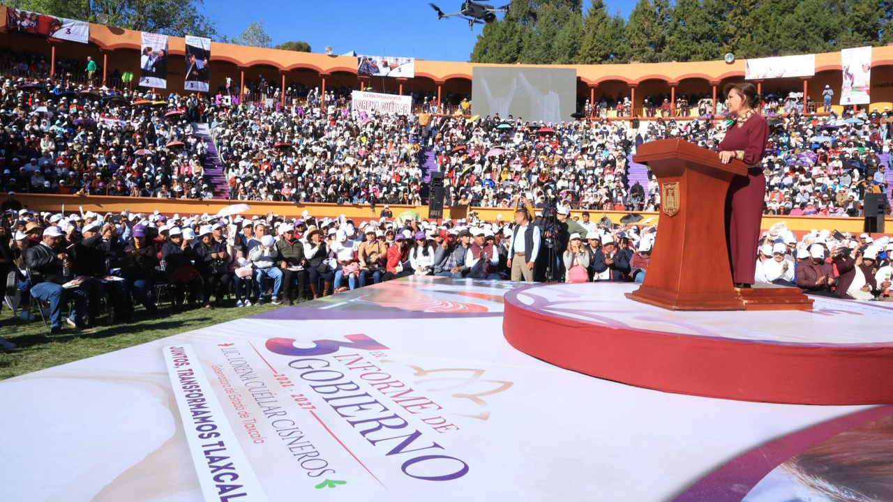 Lorena Cuéllar emitió su segundo mensaje ciudadano, en la plaza la monumental de Apizaco, con motivo de su Tercer Informe de Gobierno. En concordancia con los valores de honestidad y transparencia, y gracias al combate a la corrupción, en tres años, se mejoró la recaudación de ingresos propios en el estado de Tlaxcala, alcanzando 2 mil millones de pesos (mdp), lo que representa un incremento del 87%, expresó la gobernadora Lorena Cuéllar Cisneros, al emitir su segundo mensaje ciudadano, en la plaza La Monumental de Apizaco, con motivo de su Tercer Informe de Gobierno. Ante miles de ciudadanos, representantes populares, [...]