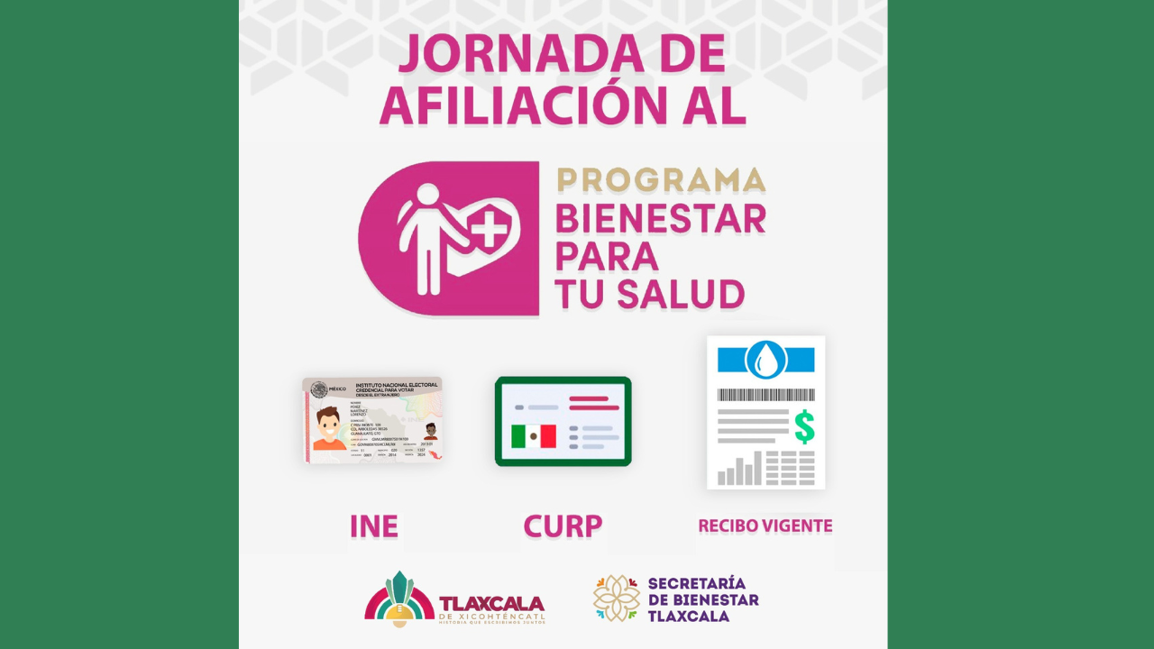 La afiliación se realizará el próximo jueves 14 de noviembre en la Presidencia de Comunidad de Ocotlán; podrán inscribirse al programa personas del municipio de cuenten o no con seguridad social El Gobierno Municipal de Tlaxcala, a través de la dirección de Bienestar Humano llevará a cabo la jornada de afiliación universal al Programa “Bienestar Para Tu Salud”, en coordinación con la Secretaría de Bienestar del Estado. Este programa está dirigido a personas que no cuentan con acceso a servicios de salud de ninguna institución o que se encuentren en situación de vulnerabilidad, no obstante, la afiliación está abierta para [...]