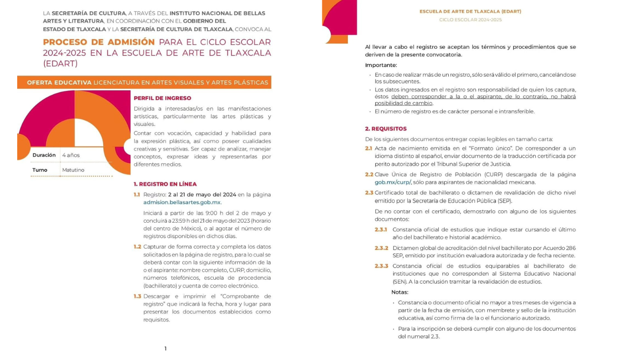 Se abrirán las licenciaturas de artes visuales y artes plásticas, música y textil en coordinación con el Inbal. El Gobierno del estado, a través de la Secretaría de Cultura (SC) y en coordinación con el Instituto Nacional de Bellas Artes y Literatura (Inbal) de la Secretaría de Cultura federal, emitió las convocatorias correspondientes para las licenciaturas de artes visuales y plásticas, música y textil. Por tanto, invita a la población interesada a conocer el proceso de admisión para el ciclo escolar 2024-2025 en la Escuela de Arte de Tlaxcala (Edart), que está dirigido hacia las personas con interés en las [...]