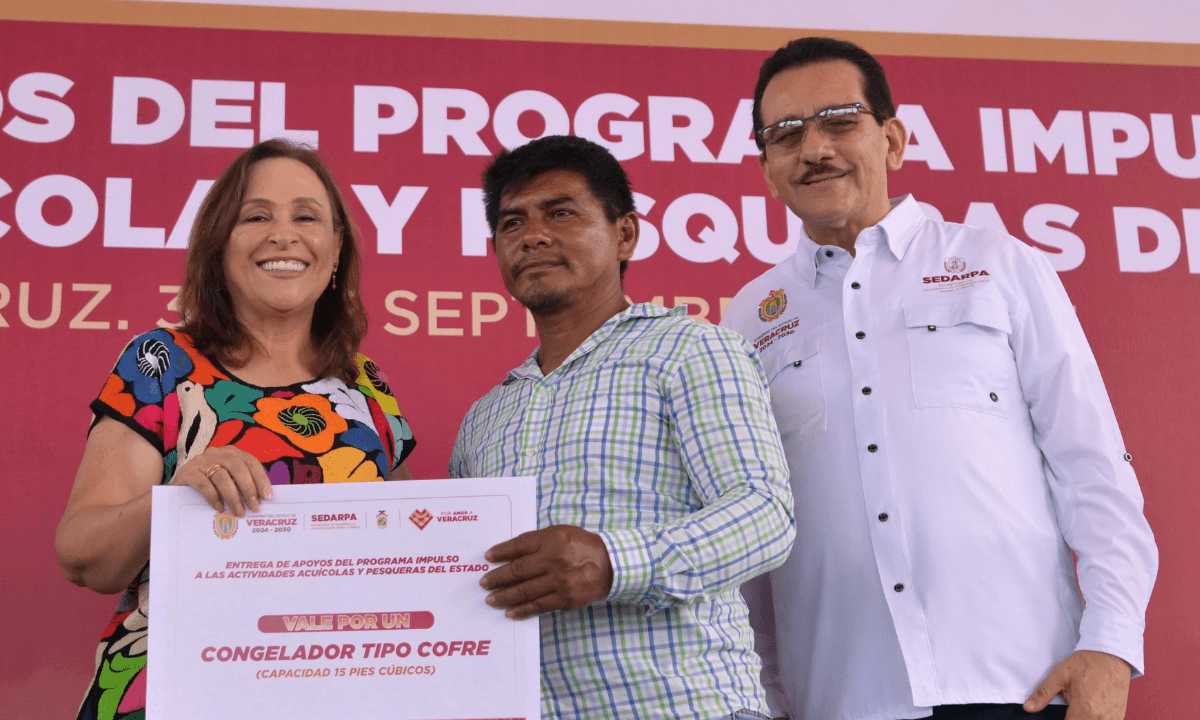 Porque la pesca y la acuacultura son prioridad nacional al garantizar alimentos de calidad, empleos e ingresos que impulsan el desarrollo, la gobernadora Rocío Nahle García encabezó la entrega de insumos y equipos del programa Fomento a las Actividades Acuícolas y Pesqueras, implementado por la Secretaría de Desarrollo Agropecuario, Rural y Pesca (Sedarpa). Al otorgar los apoyos a productores como Timoteo Izquierdo Santos, Concepción Pérez Trujillo y Beatriz Torres Hernández, la mandataria confió en que serán utilizados de manera responsable para beneficio directo de las familias, recordando que “esa es la base de la Cuarta Transformación que construimos junto a [...]