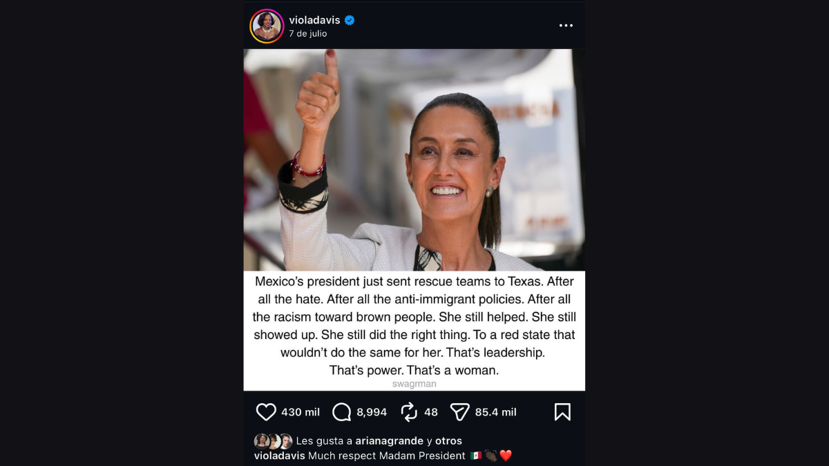 #NACIONAL Richard Gere, Viola Davis, Jamie Lee Curtis y otras celebridades reconocen el trabajo de la Presidenta Claudia Sheinbaum en este 2025