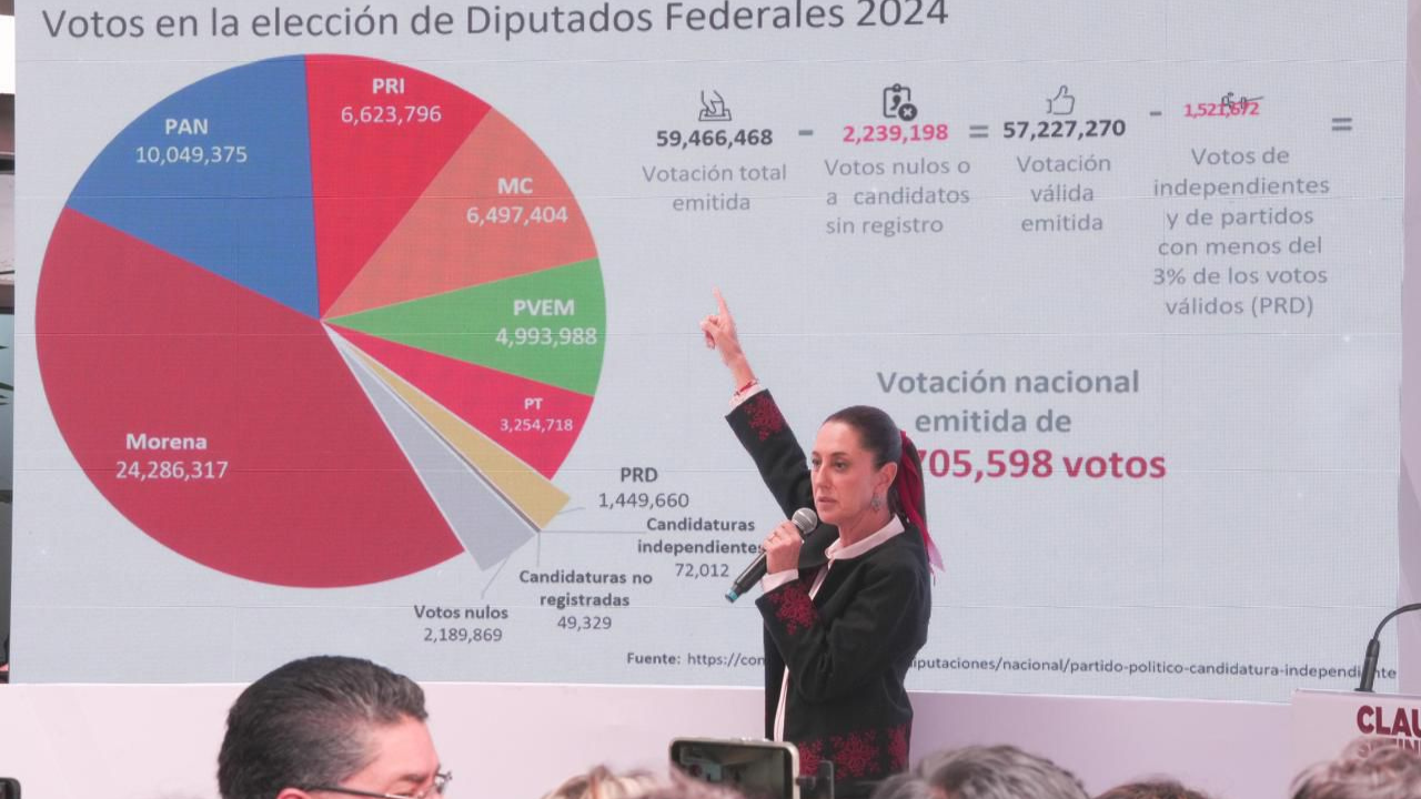 “El Instituto Electoral y el Tribunal no tienen más que cumplir la ley como viene”, afirmó “Hay una representación proporcional que favorece a las minorías””, explicó la Presidenta Electa de México Con el objetivo de hacer respetar las leyes electorales y la voluntad del pueblo, Claudia Sheinbaum Pardo, Presidenta Electa de México, explicó el proceso de repartición de diputaciones federales de representación proporcional y puntualizó que no existe una sobrerrepresentación de Morena en el Congreso de la Unión, como lo acusa la oposición. Asimismo, ante medios de comunicación, aseguró que la ley vigente beneficia con espacios plurinominales a los partidos [...]